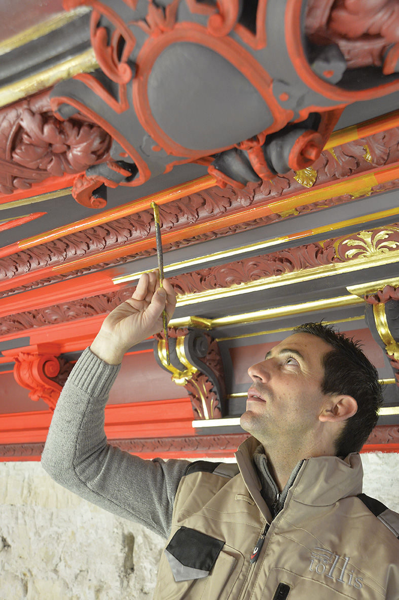 L’atelier Tollis est spécialisé dans la restauration de décors peints précieux, d’objets polychromes et dans la restitution ou la création de peintures ornementales, que ce soit à travers des opérations d’envergure en Monuments Historiques ou dans le secteur du luxe et de la décoration d’intérieurs.