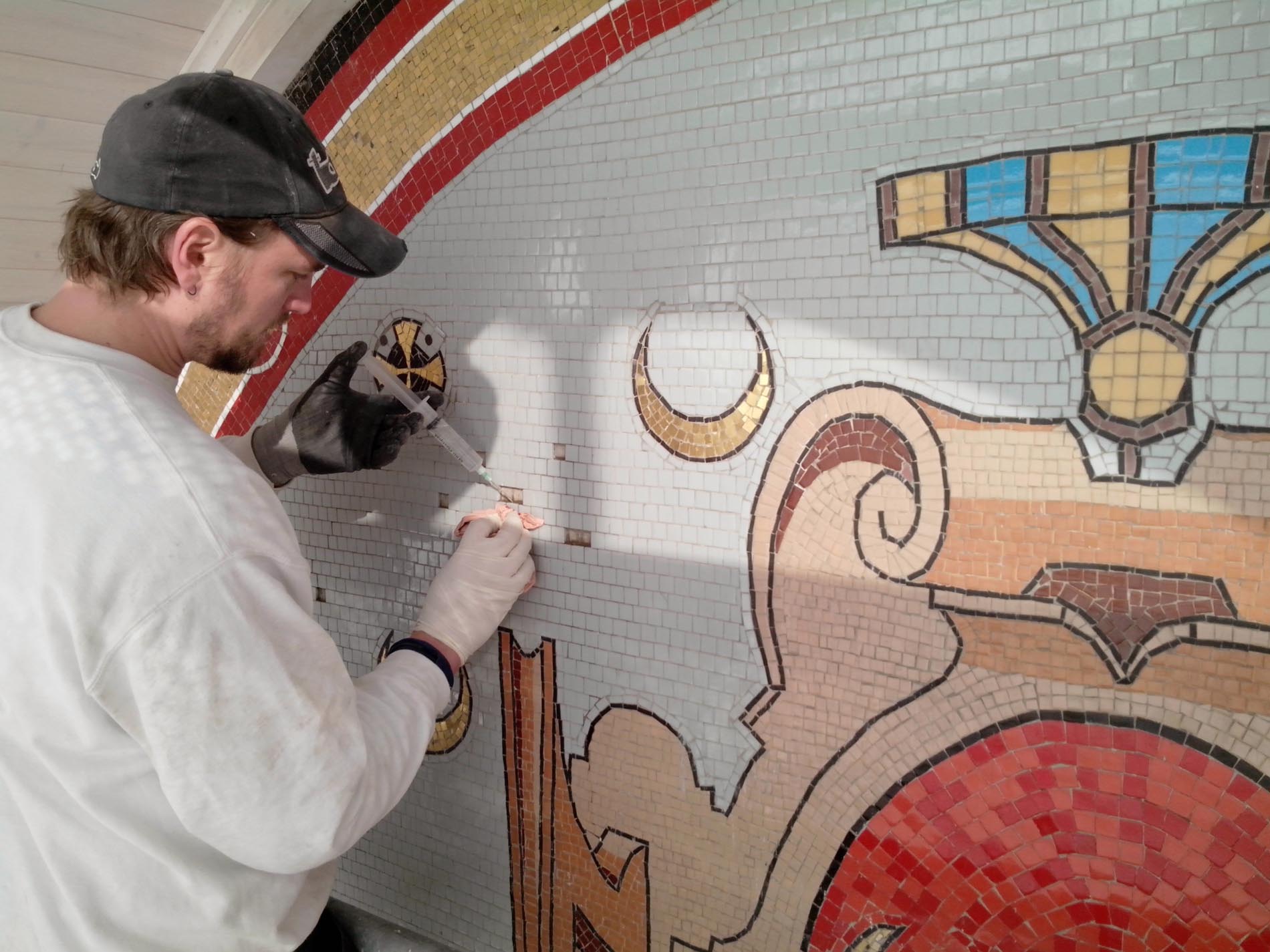 - Entretien de mosaïques au sol ou en élévation
